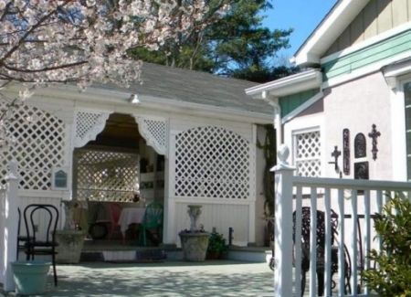 The Garden Walk Bed and Breakfast Inn is Lookout Mountain's newest and finest vacation get-away. Nestled among the mountain's 100 year old pines, and surrounded by gardens, it is a patchwork fantasy of nostalgia and whimsy - a place where bicycles and boots are planters, rhododendron are trees, kitchen gardens grow plates as well as flowers, and the sound of a waterfall can be heard as you stroll down woodsy paths. |