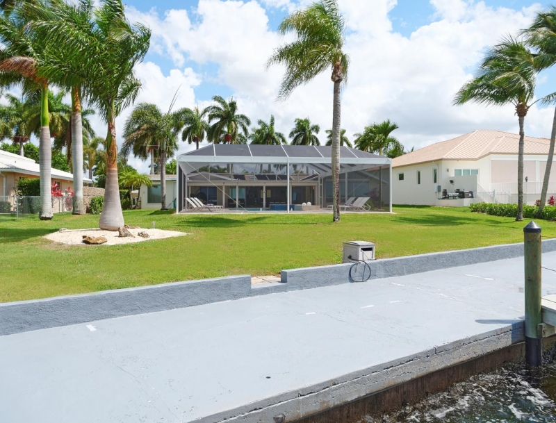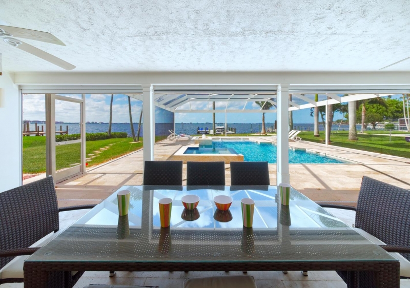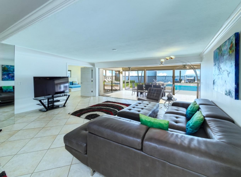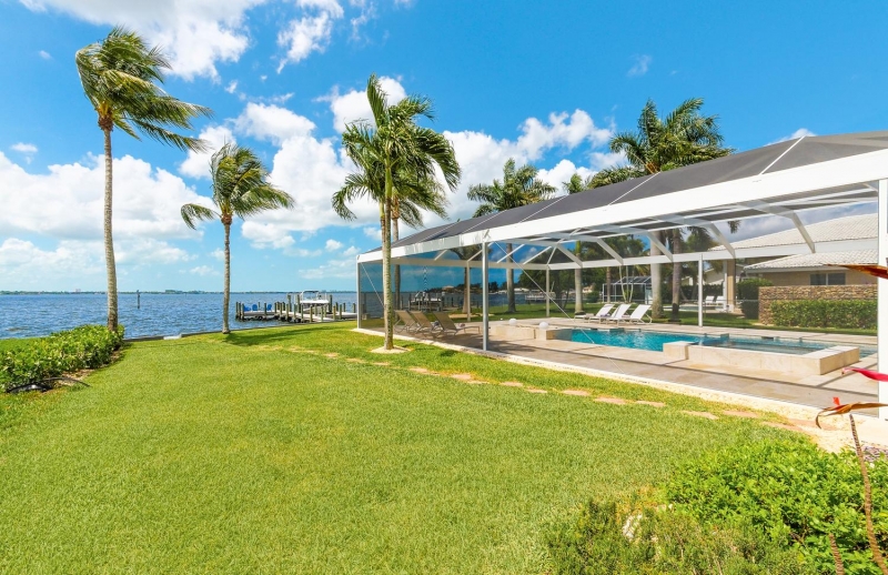 Right On The River** Upscale Neighborhood** Prime Location** Southern Rear Exposure** Two Main Suites** 18,000 Sqft lot** 4 Bedrooms** 3 Bathrooms** all new furniture** two new bathrooms** new kitchen and appliances** new AC** huge pool with new pump and heater (solar and electrically heated)** new big dock with lift** ... and much more** |